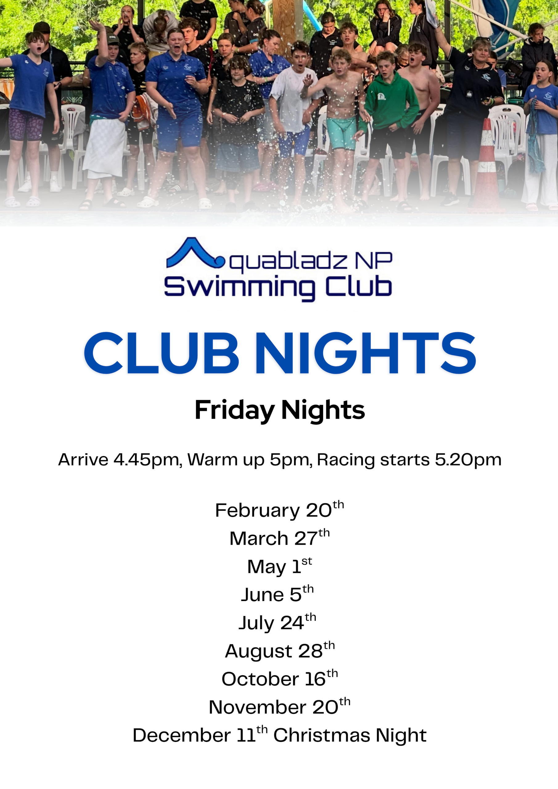 Swimmers to come along and meet the rest of the Aquabladz club (and/or other invited clubs).